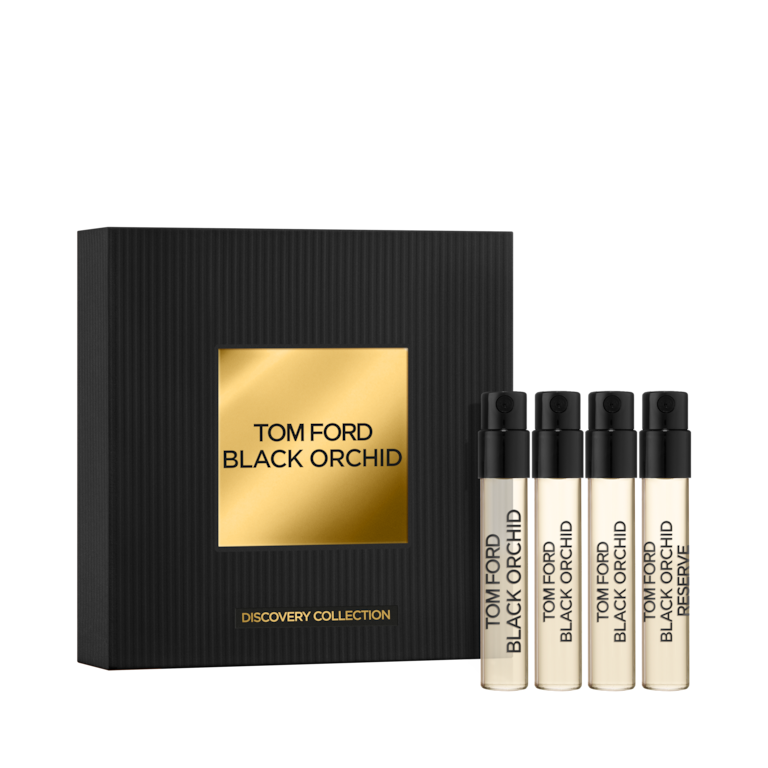 A complete collection. TF's perfect flower in all its iterations. Experience four unique dimensions of Black Orchid,each scent a unique floral amber revelation.
